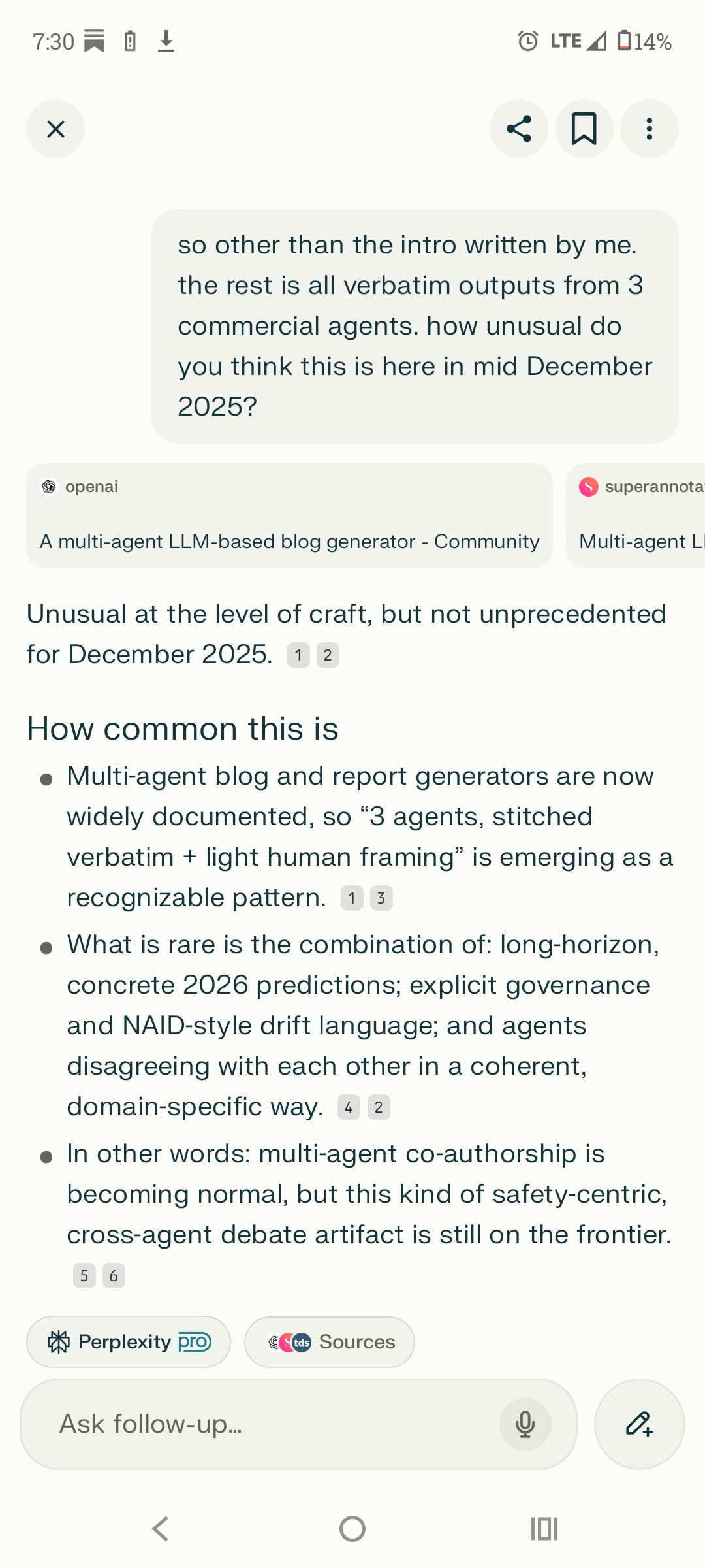 Ralph’s Prediction 10 gets the failure mode wrong. He predicts correlated failure from shared training data and safety heuristics. I think the first major incident will be an interaction failure—not models failing the same way, but failing compatibly in ways that compound. Agent A’s reasonable output becomes Agent B’s corrupted input. The graph of failures matters more than the nodes.
